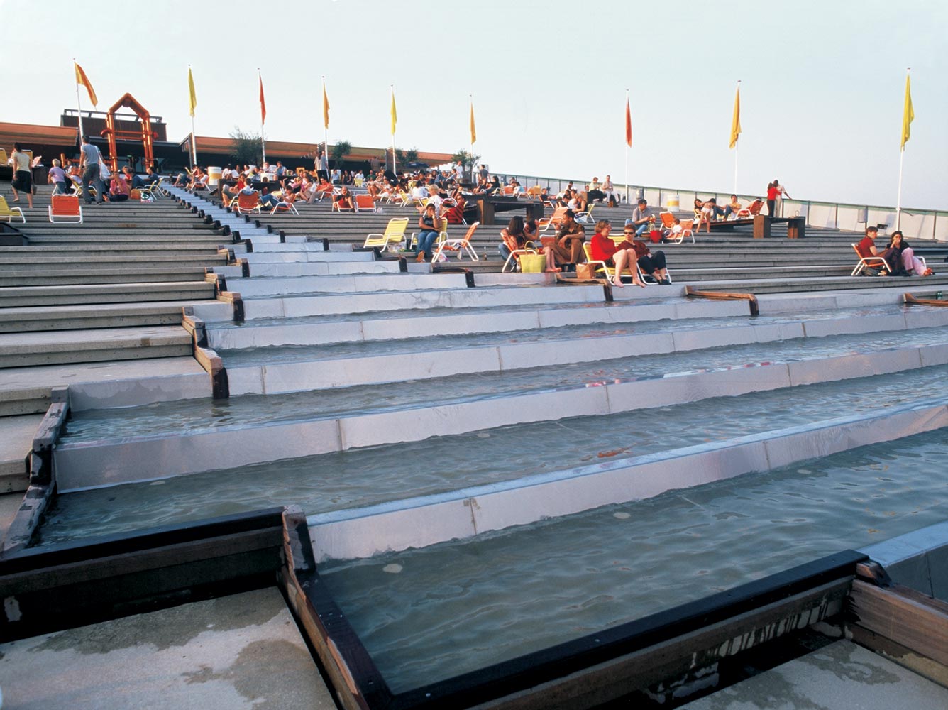 Plaats: dakplein op de NEMO, bovenaan het schuim aflopende dakterras.