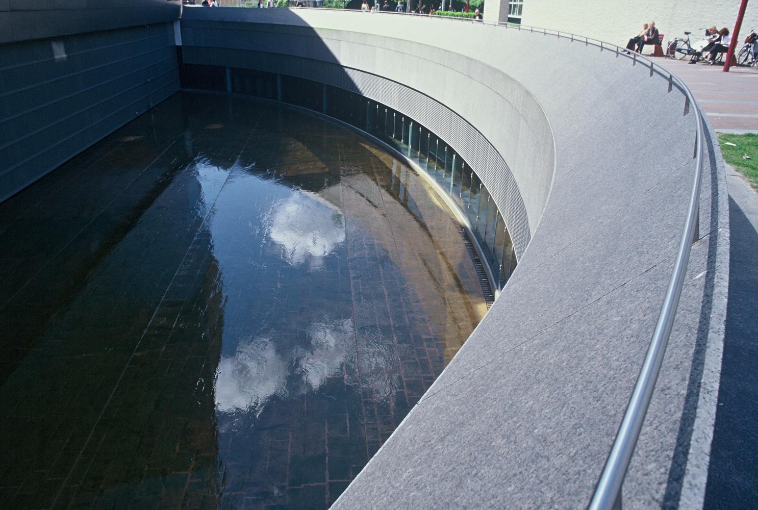 De verzonken watertuin in de nieuwe vleugel van Kisho Kurokawa is in 2015 verdwenen om plaats te maken voor de nieuwe entree aan het Museumplein.