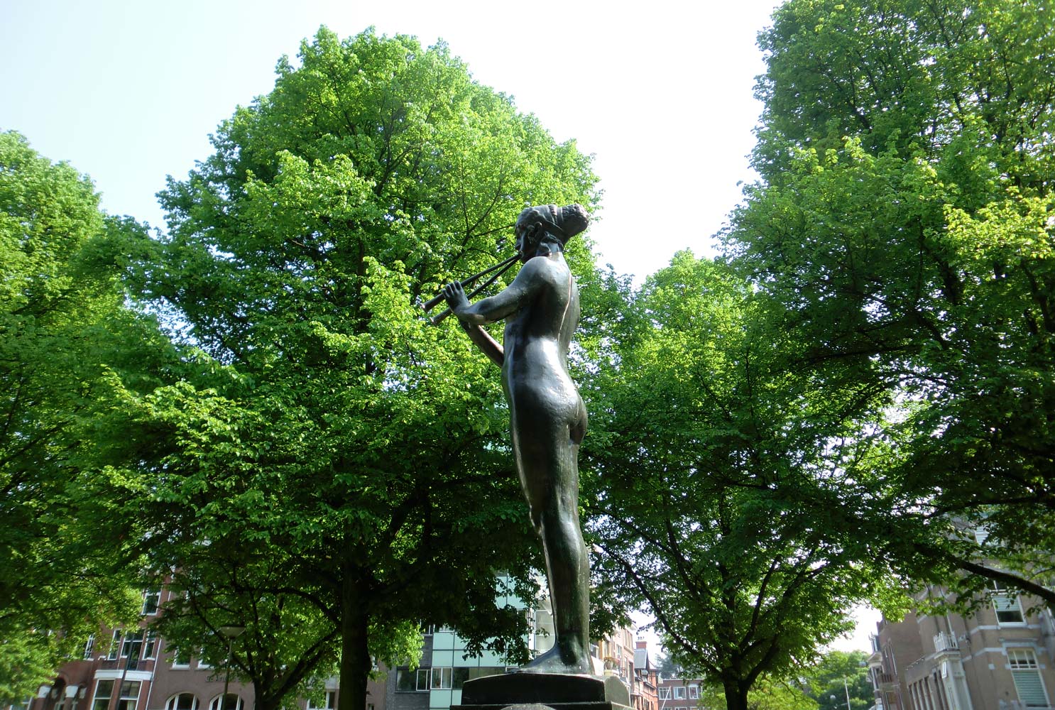 De vereerders van Schürmann hadden daar geen vrede mee en gaven de beeldhouwer Ingen Housz opdracht een oplossing te vinden. Ingen Housz maakte de bronzen vrouw die op twee fluiten speelt.